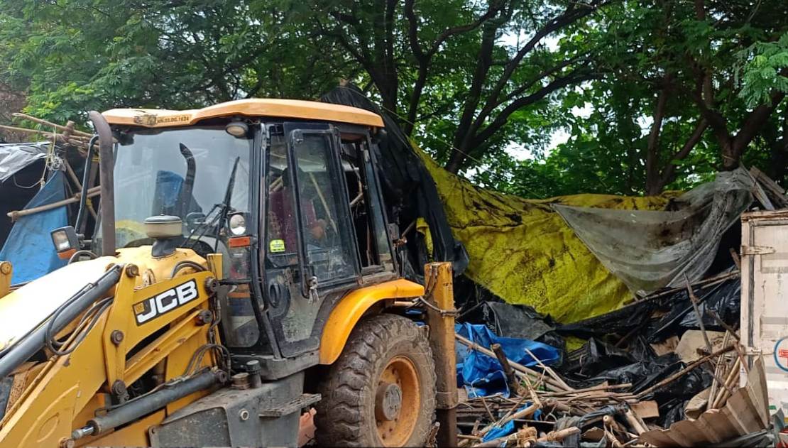 The Navi Mumbai Municipal Corporation carried out a demolition drive against unauthorised sheds in Turbhe after the occupants ignored prior notices. Under instructions from Municipal Commissioner Dr Kailas Shinde and supervision by Additional Commissioner Dr Rahul Gethe and Deputy Commissioner Dr Kailas Gaikwad, the encroachment department undertook the operation. A team comprising local civic officers, security personnel, and police officials ensured the removal was carried out smoothly using 21 labourers and a JCB machine.