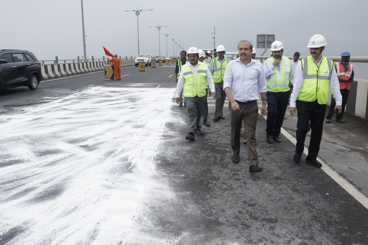 Under the guidance of Dr Sanjay Mukherjee, IAS, Metropolitan Commissioner of MMRDA, a comprehensive inspection of the 22-kilometre Atal Setu was undertaken by Additional Metropolitan Commissioner and Project In-Charge Shri Vikram Kumar, IAS.